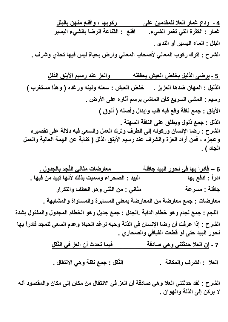شرح قصيدة من لامية العجم لمادة اللغة العربية للصف العاشر الفصل الأول منتديات صقر الجنوب