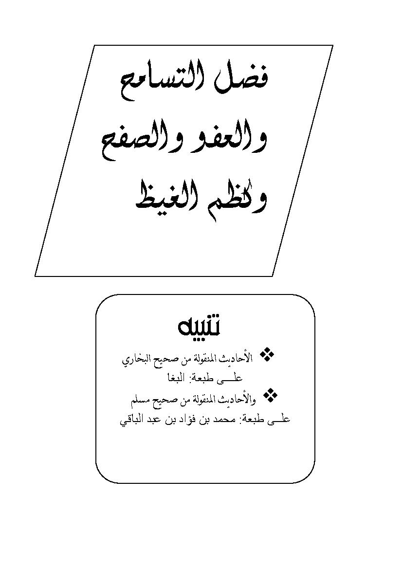 متن فضل التسامح والعفو والصفح وكظم الغيظ الشيخ محمد بن عبد الوهاب الوصابي